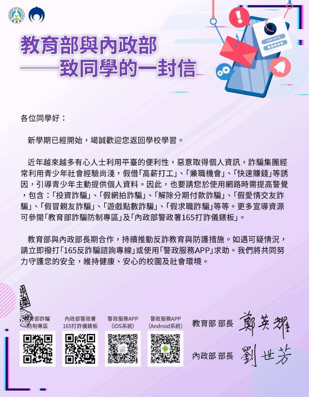 教育部與內政部--致同學的一封信
